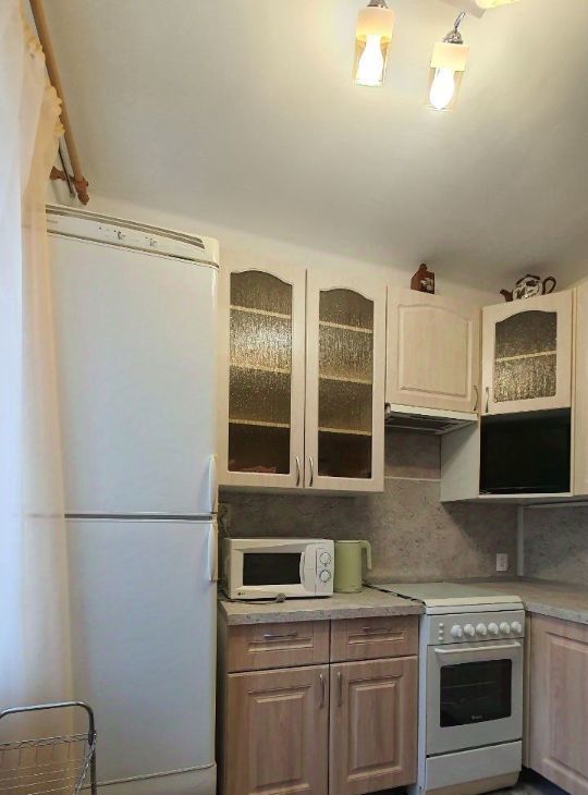 Мебель и техника: Всё необходимое есть — удобные диваны, шкафы, телевизоры, функциональная кухня с вместительным мебельным гарнитуром и необходимой бытовой техникой: газовая плита, холодильник, микроволновка.