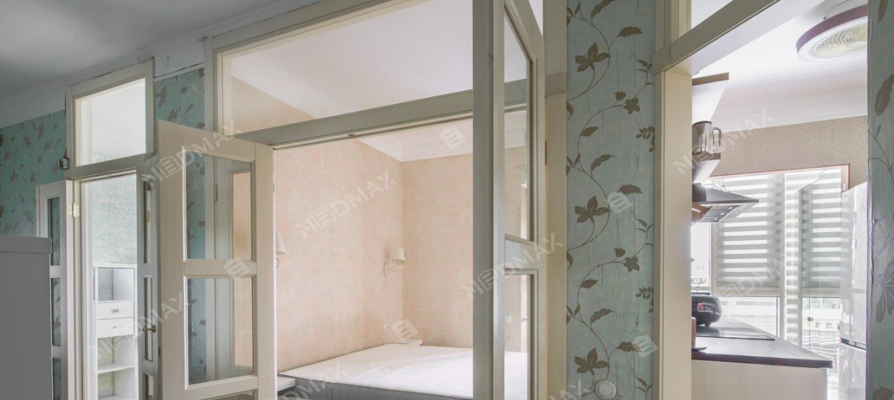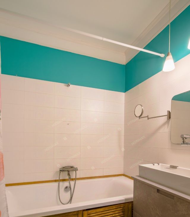 Санузел совмещенный, оформленный в светлых тонах, что добавляет легкости и простора. Окна выходят во двор, обеспечивая тишину и спокойствие.