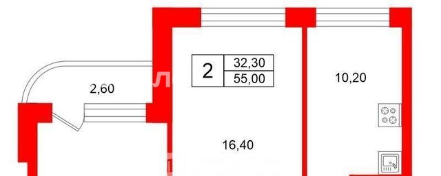 2-к кв. Санкт-Петербург ул. Хошимина, 13к1 (55.0 м²)