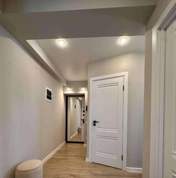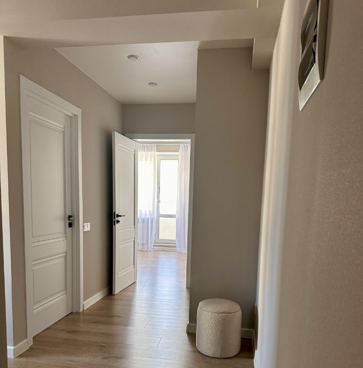 В прихожей встроенный шкаф - купе с выводом труб под стиральную машину. В квартире установлены перекрестные выключатели.