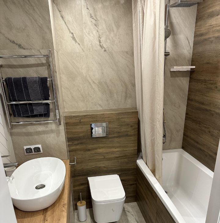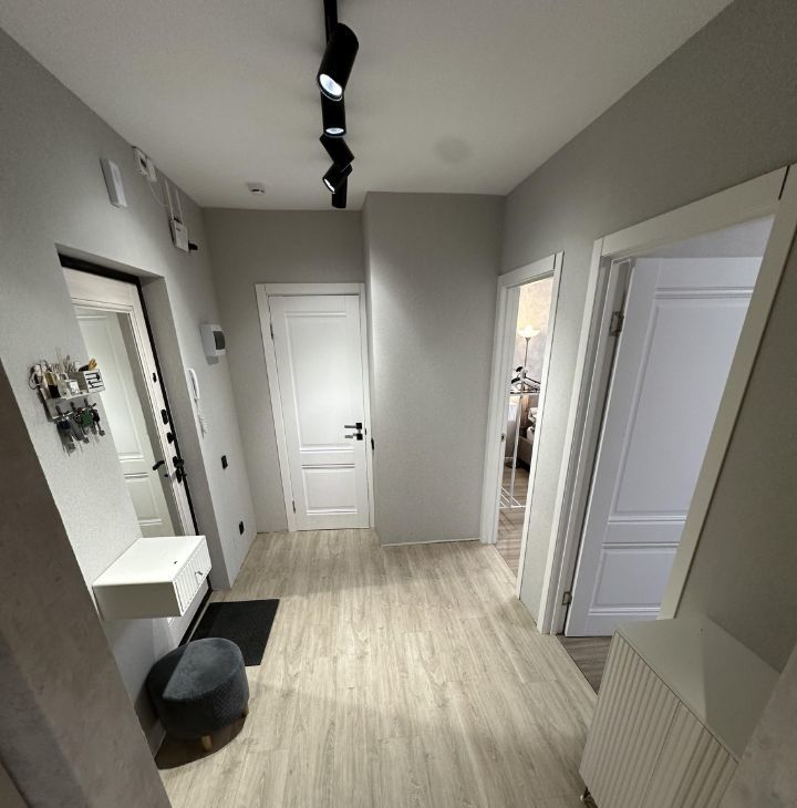 В квартире выполнен качественный ремонт, есть вся необходимая мебель и техника, в ванной теплый пол, на окнах москитные сетки, а так же есть кондиционер.