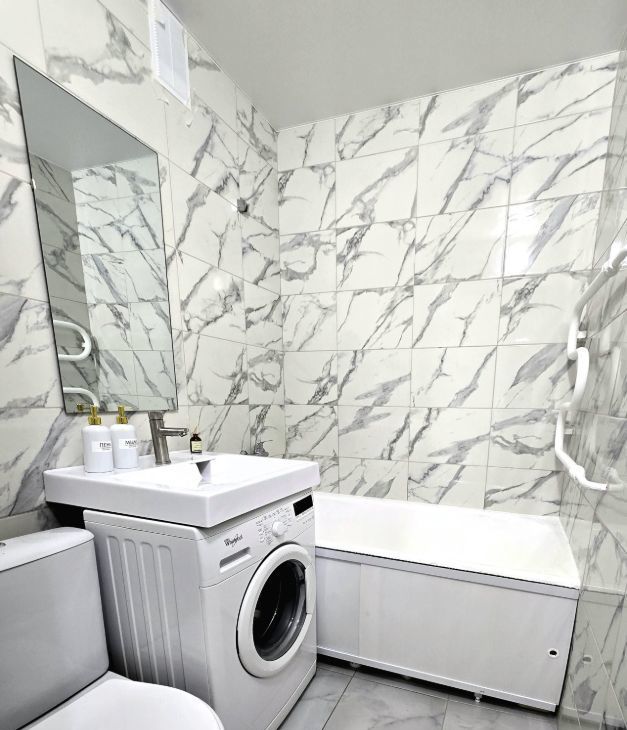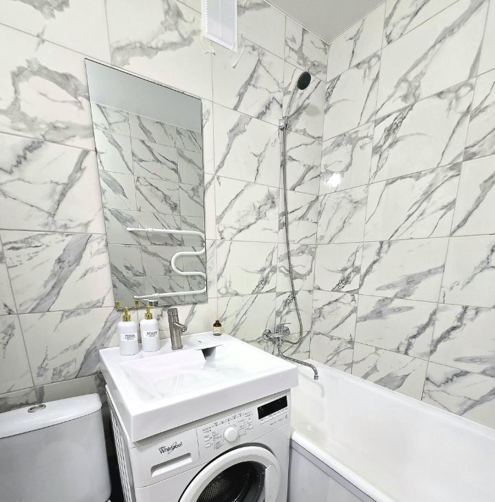 Установлена новая кухня, оборудованая техникой (холодильник, вар панель, дух шкаф, посудомойка). Также есть и стиральная машина.