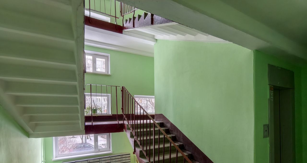 Панельный дом, но ухоженный: парадная покрашена, окна стеклопакеты, есть лифт. Да, лифт — для колясок, велосипедов и ленивых.