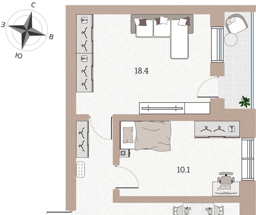 — Комнаты 18 и 10. Раздельные. Большая — хоть спальня, хоть зал. Маленькая — идеально в детскую или кабинет (помещается и кровать, и шкаф).