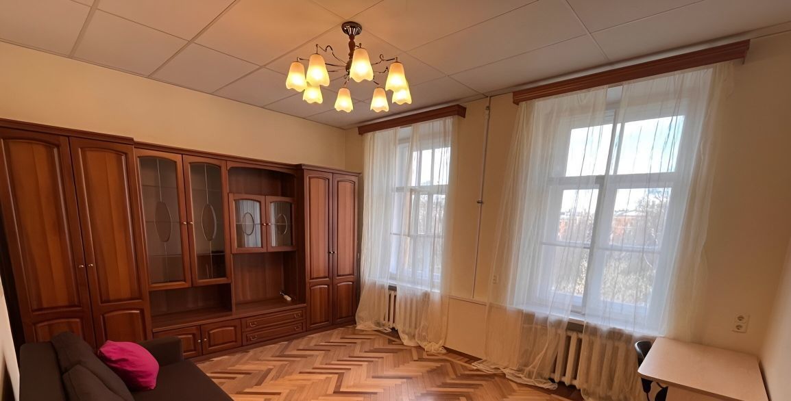 Окна квартиры смотрят на 2 стороны (в красивый Выборгский парк и на тихую зеленую улицу), вход с улицы. До метро Пл.Ленина всего 9 мин пешком. В доме есть лифт!
