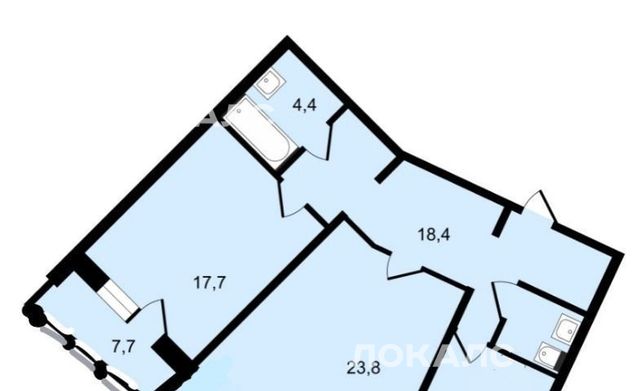 Сделана перепланировка. Согласование возможно (квартира на 2-ом этаже над коммерческими помещениями)