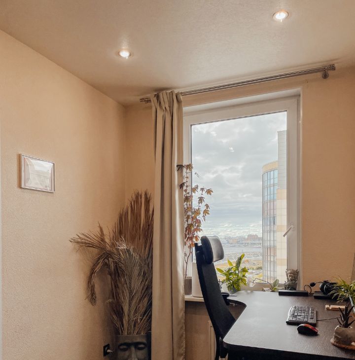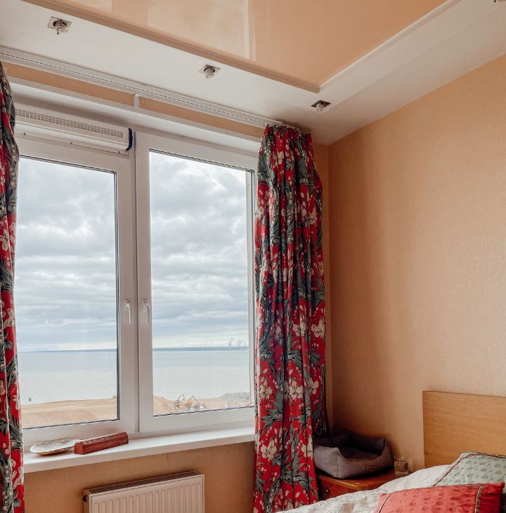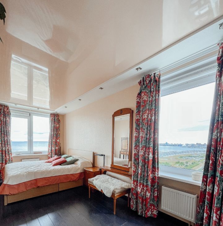 Квартира видовая, из спальни открывается прямой вид на залив. Лучшие закаты.