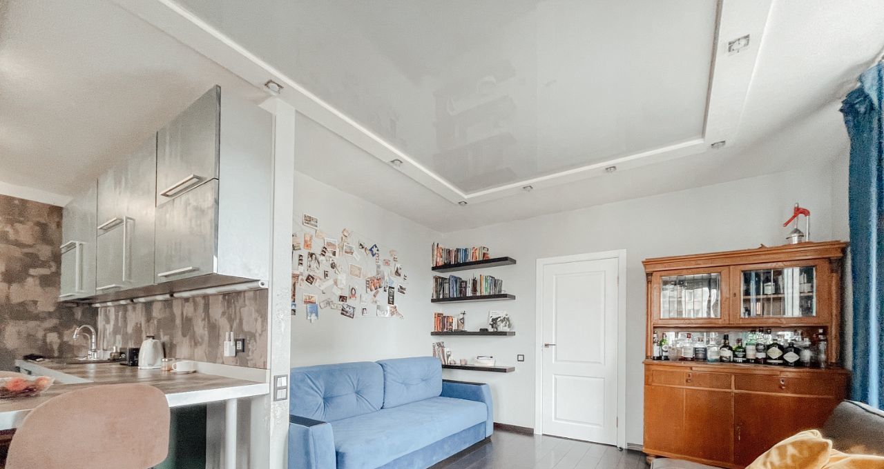 С зоны кухни-гостиной можно наблюдать реку Смоленку.