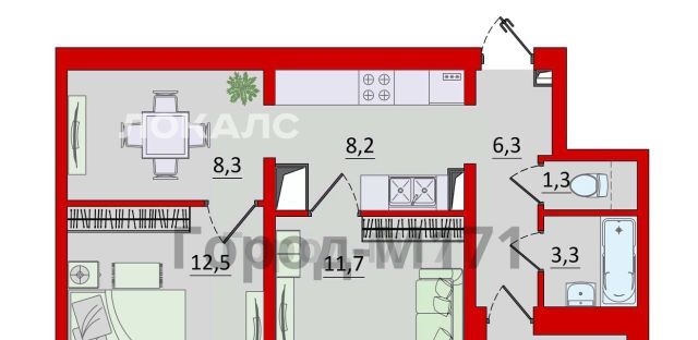 2-к кв. Санкт-Петербург ул. Кораблестроителей, 32К1 (51.6 м²)