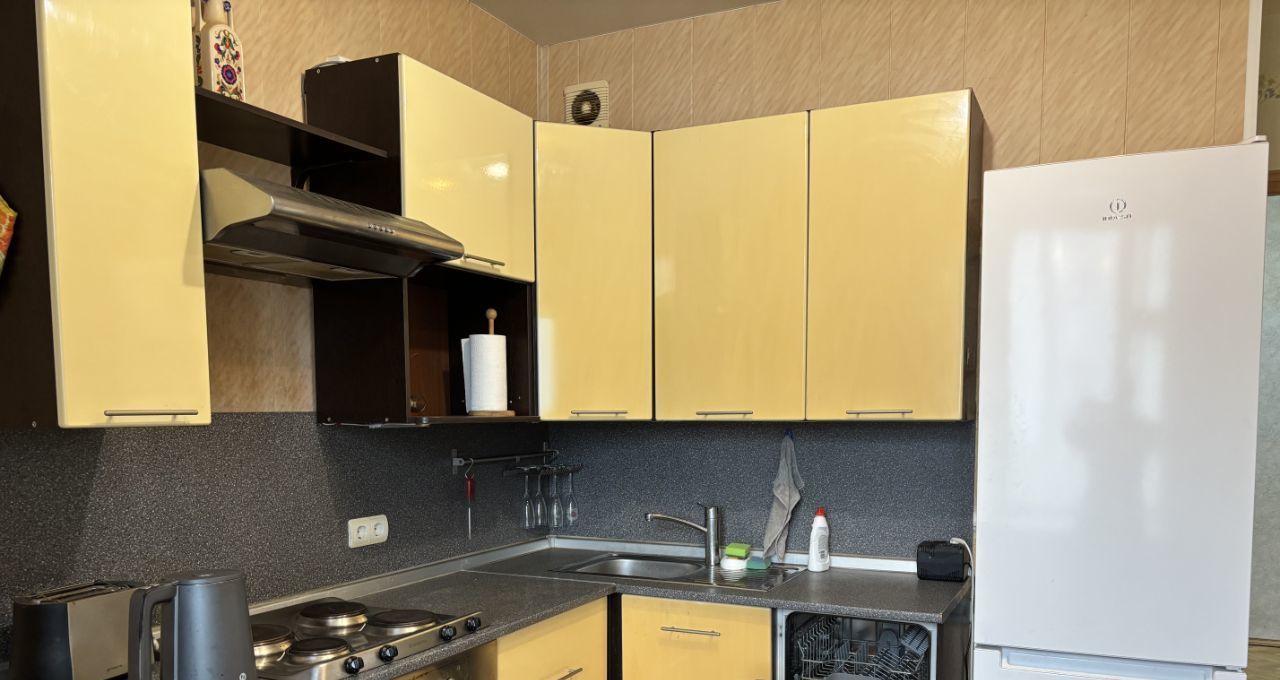 В квартире есть все необходимое для комфортного проживания: современный евроремонт, мебель на кухне и в комнате. Из техники: кондиционер, холодильник, посудомоечная машина, телевизор и стиральная машина. Санузел совмещенный, оборудован душевой кабиной. Также в квартире есть одна лоджия и один балкон, где можно наслаждаться свежим воздухом.