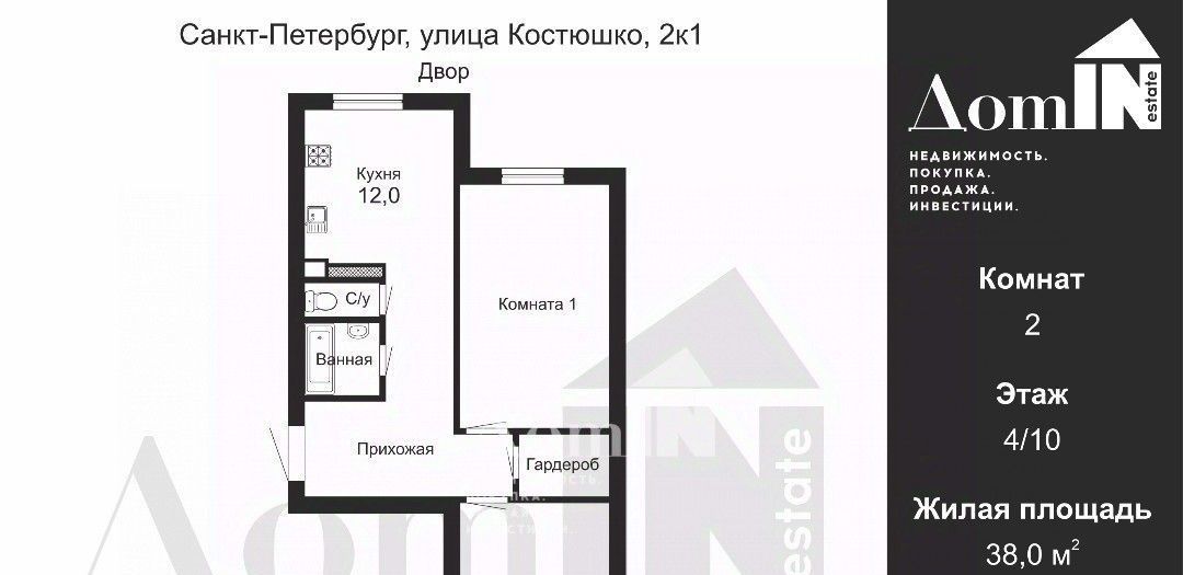 2-к кв. Санкт-Петербург ул. Костюшко, 2к1 (64.0 м²)