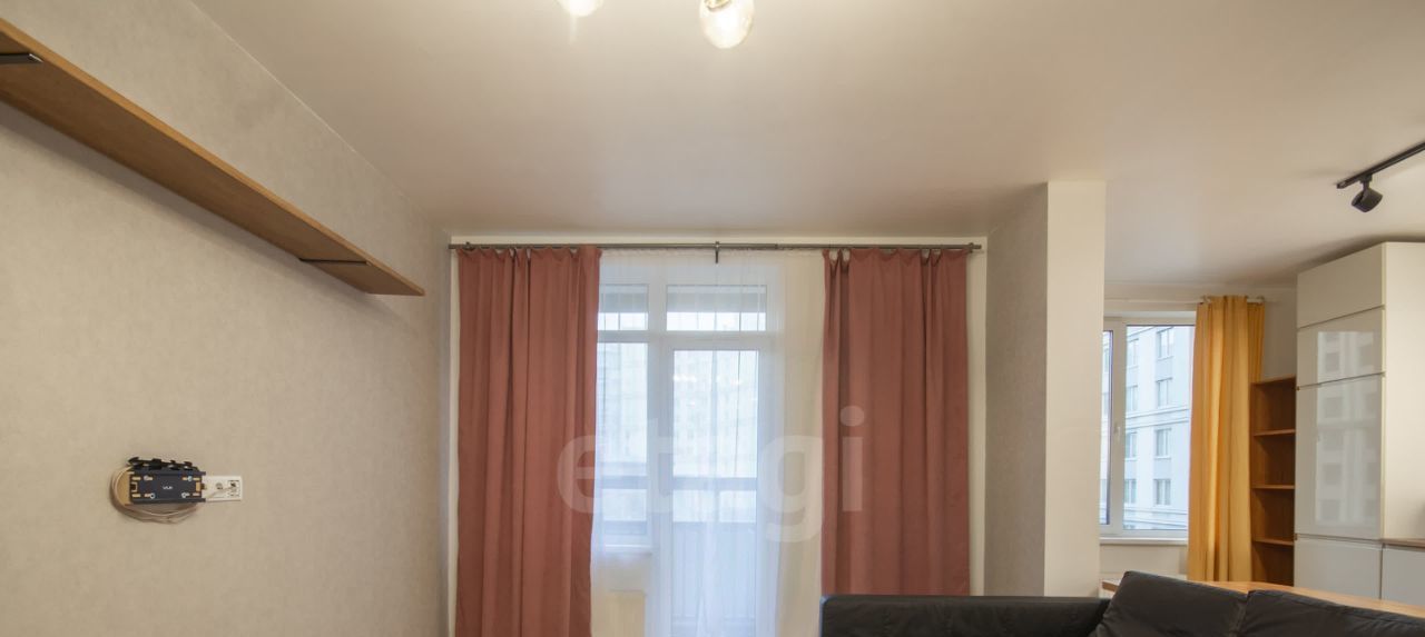 Большая кухня-гостиная с оборудованным рабочим местом, изолированная спальня, раздельный санузел, лоджия.