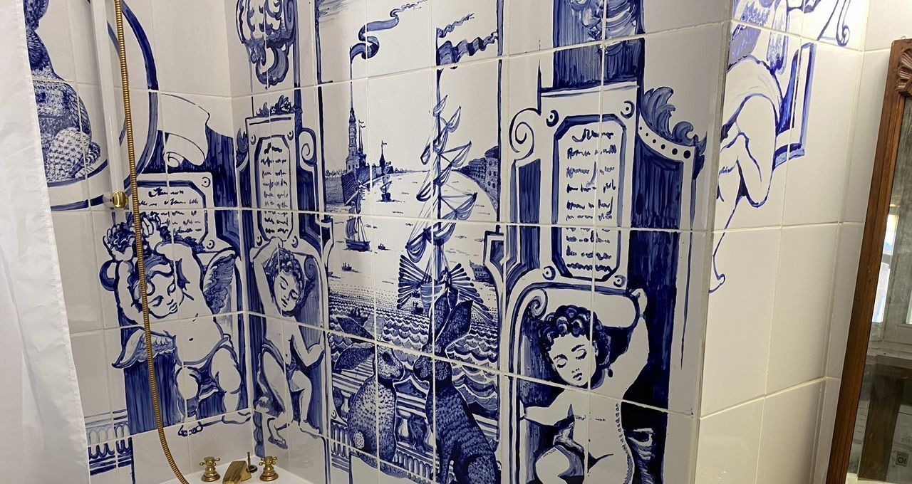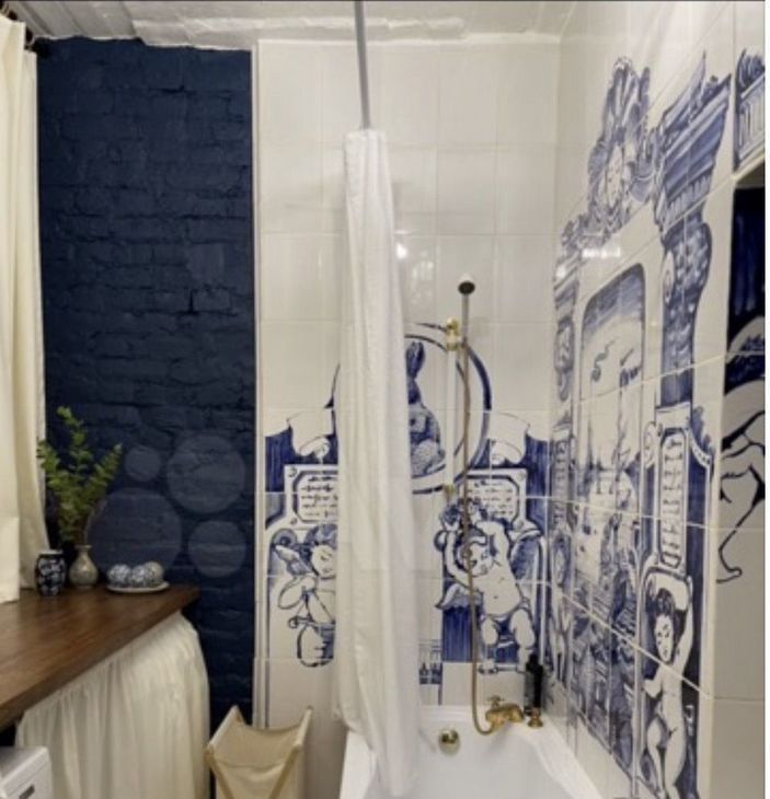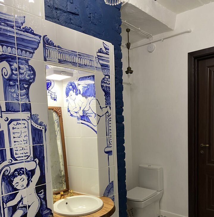 • Совмещенный, оформленный плиткой с ручной росписью.