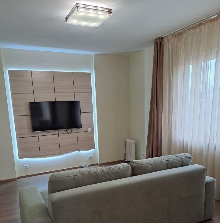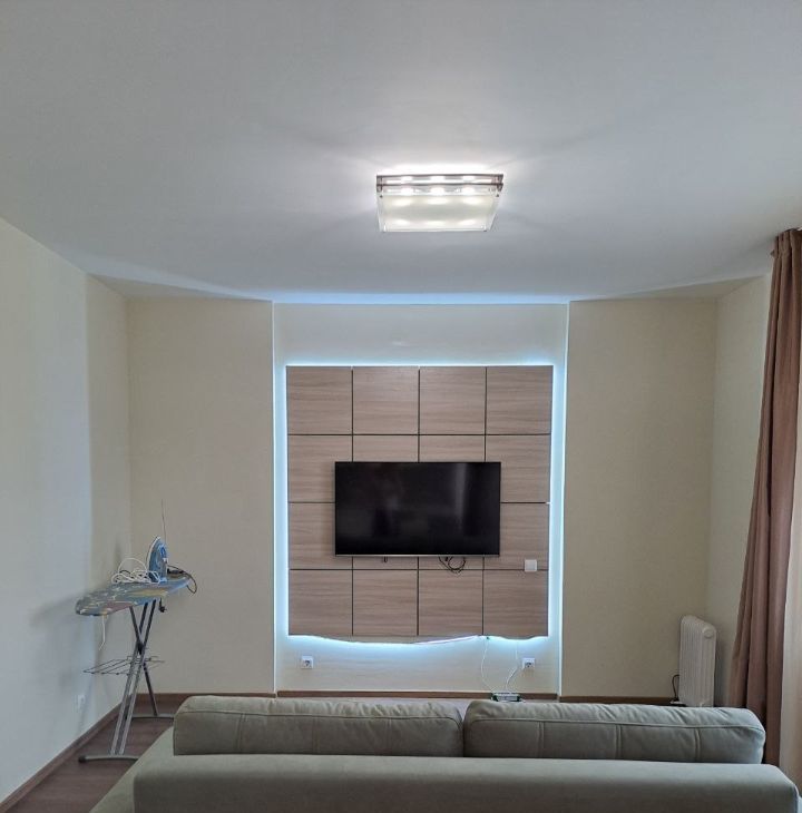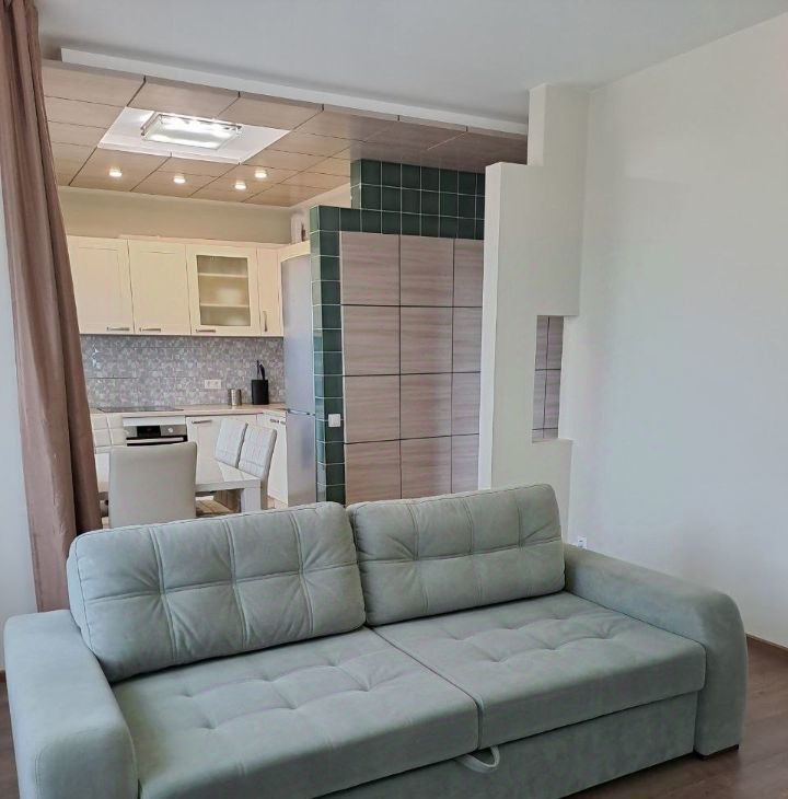 В квартире есть всё необходимое для комфортного проживания. Просторная жилая площадь в 35 кв. м и кухня 10 кв. м полностью меблированы. На кухне и в комнате установлена современная мебель. В ванной комнате находится душевая кабина. Из техники холодильник, телевизор и стиральная машина. Высокоскоростной интернет уже подключен, поэтому можно сразу начать пользоваться.