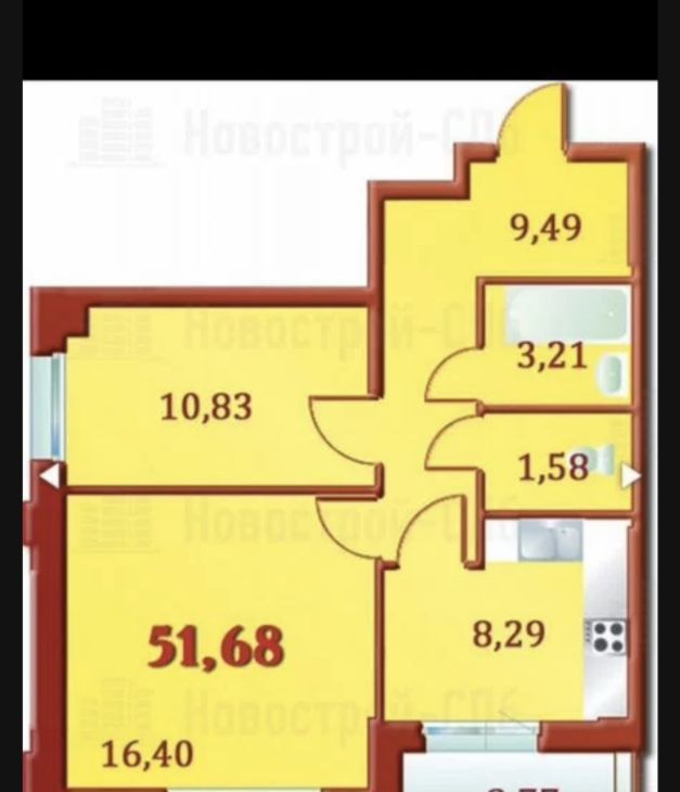 2-к кв. Санкт-Петербург ул. Лени Голикова, 15к5 (52.0 м²)