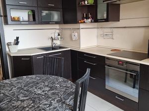 Кухня оборудована современной техникой, а санузел отделан стильной плиткой.