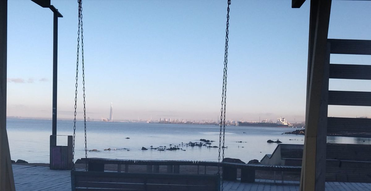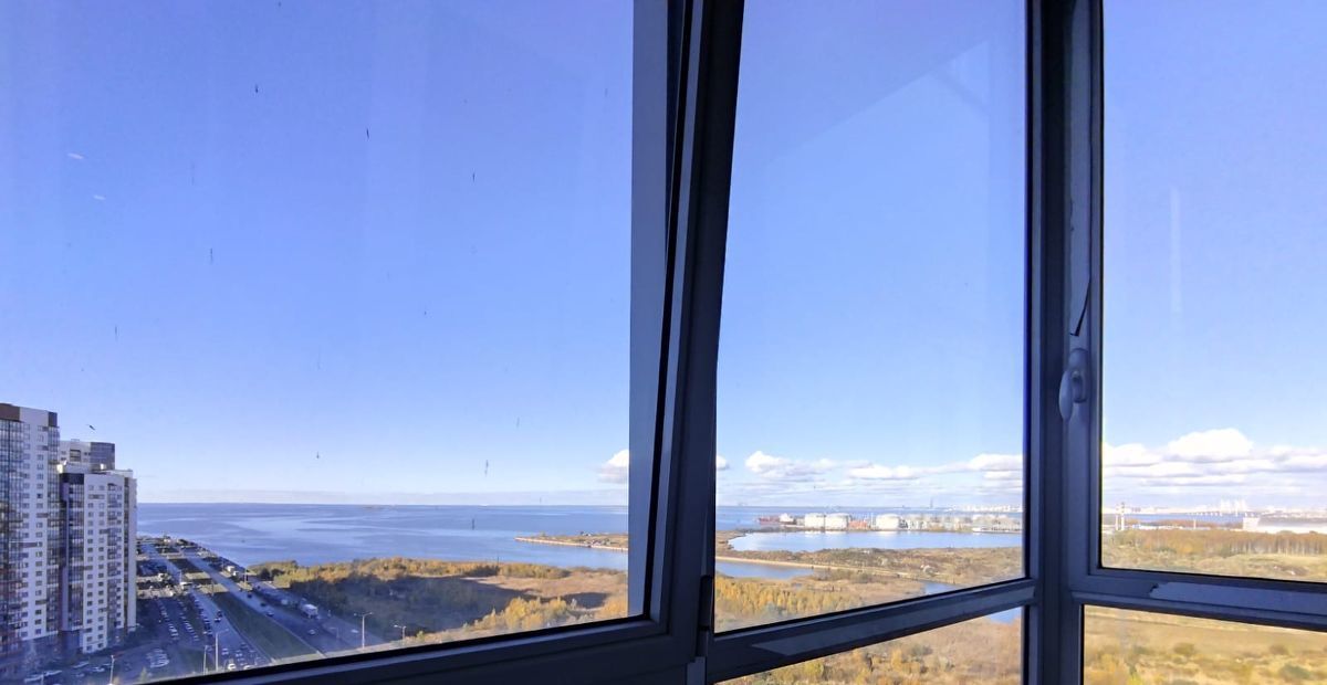 Светлая, просторная, теплая и уютная двухкомнатная квартира с красивым прямым видом на Финский залив и берег залива.