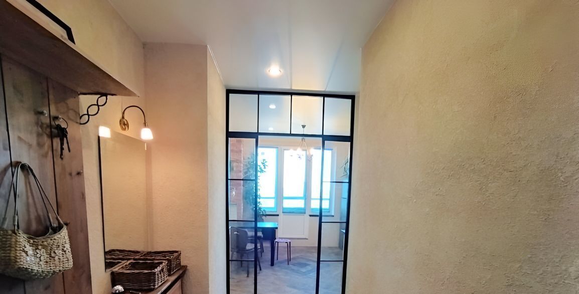 Просторная панорамная лоджия; испанская керамика и керамогранит; испанская и немецкая сантехника; теплые полы, разделенные для удобства и экономии на зоны (прихожая, коридор, кухня, ванная); полный набор встроенной бытовой техники.