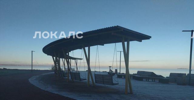 В квартале от дома прекрасный сквер с променадом вдоль берега залива, обустроенный спортивной и детской площадками и небольшим пляжем.