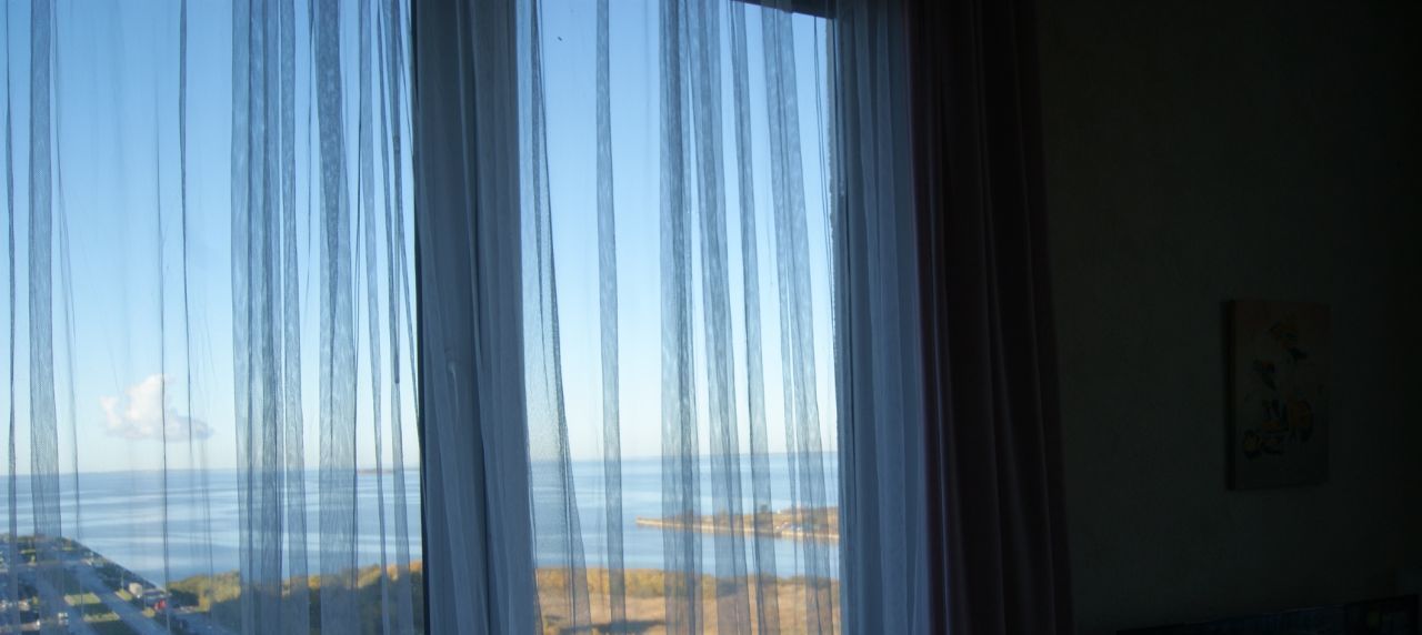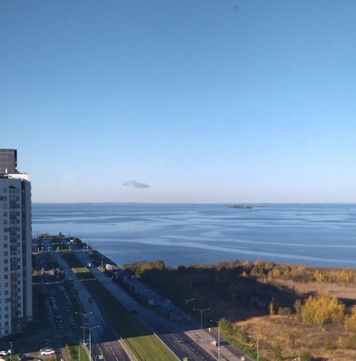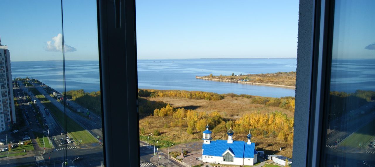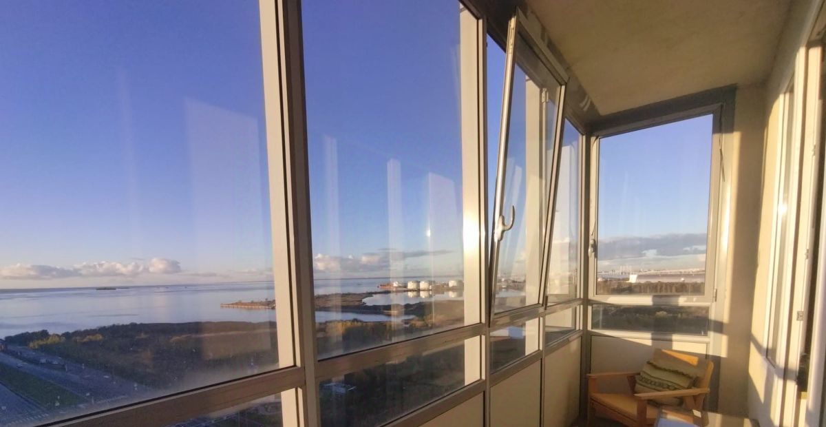 Светлая двусторонняя двушка с прямым видом на Финский залив и берег.