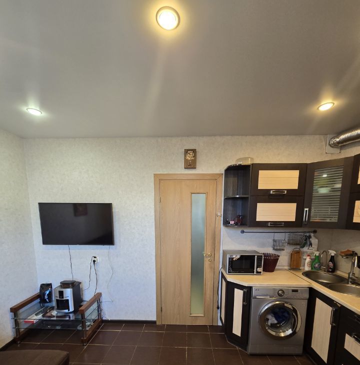 Квартира с евроремонтом, полностью готова к комфортному проживанию. В комнате и на кухне есть необходимая мебель. Кухня оснащена всей необходимой техникой: холодильником, телевизором и стиральной машиной. В ванной комнате установлена душевая кабина. Есть одна лоджия, где можно отдохнуть на свежем воздухе. Для удобства жильцов в доме установлен грузовой лифт, а также функционирует мусоропровод.