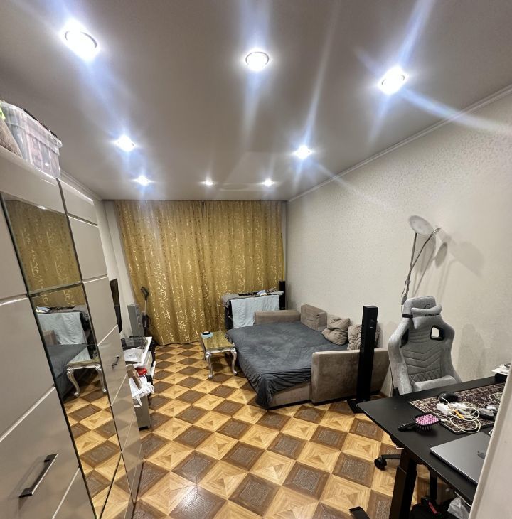 В квартире сделан косметический ремонт, она полностью обставлена мебелью и укомплектована необходимой техникой: кондиционер, холодильник, телевизор и стиральная машина. Ванная комната оборудована душевой кабиной. Окна выходят на улицу, что обеспечивает много света в квартире. Из дополнительных удобств — балкон и мусоропровод.