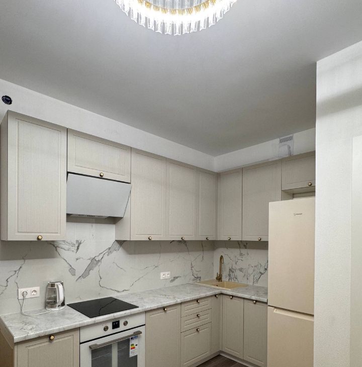 стиральная машина, посудомоечная машина, духовой шкаф, варочная панель, чайник, вытяжка, холодильник.