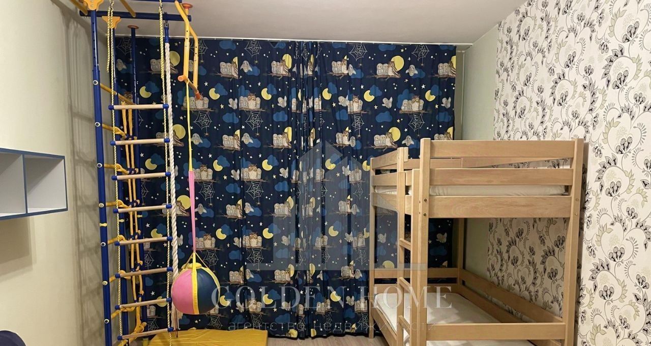 Полностью меблирована и технически оснащена. Кухня укомплектована всей необходимой техникой: посудомоечная машина, духовка, микроволновка, вытяжка, холодильник, плита индукционная. В детской есть даже спортивный уголок. Все для вашего комфорта.