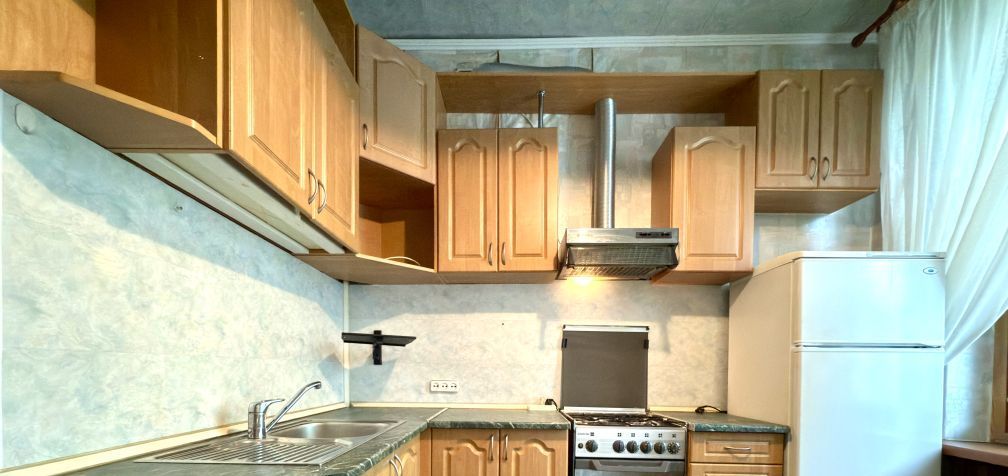 — кухня со всей необходимой для жизни техникой: газовая плита с электроподжигом с духовым шкафом, вытяжка, двухкамерный вместительный холодильник; кухонных стола и стульев - нет (по приобретению можно обсудить)