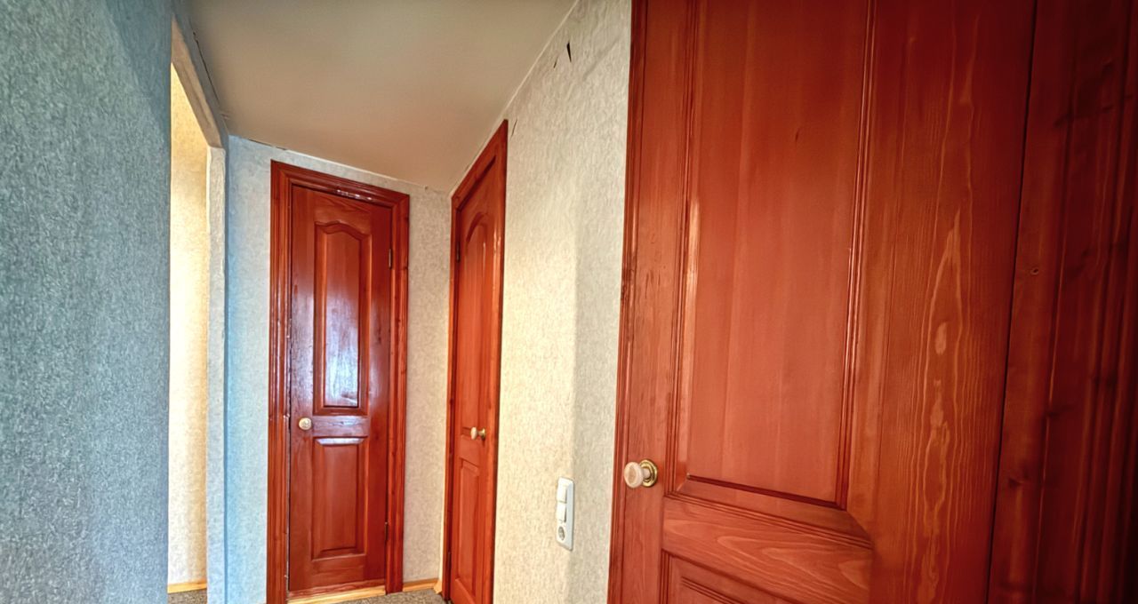 — в маленькой комнате - деревянный пол, в санузле - плитка, на кухне - линолеум, в большой комнате и прихожей - ковролин (в хорошем состоянии)