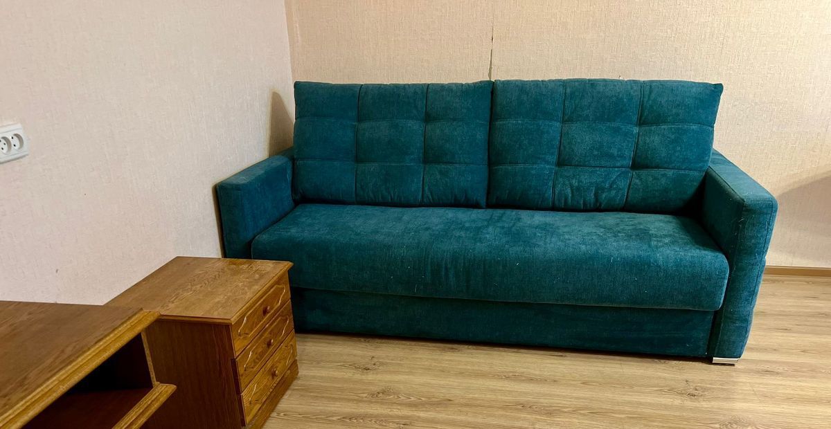 квартира полностью мебелирована: кровать 160см с удобным матрасом, комфортный диван, шкафы для хранения, кухонный гарнитур.