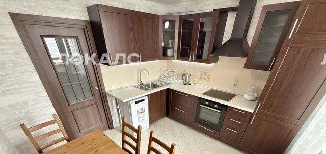 — встроенная кухня со всей необходимой техникой: духовой шкаф, электрическая варочная панель, вытяжка, встроенный холодильник, новая ПОСУДОМОЕЧНАЯ МАШИНА, электрический чайник; необходимый комплект ПОСУДЫ; подсветка рабочей зоны кухни, много места для готовки