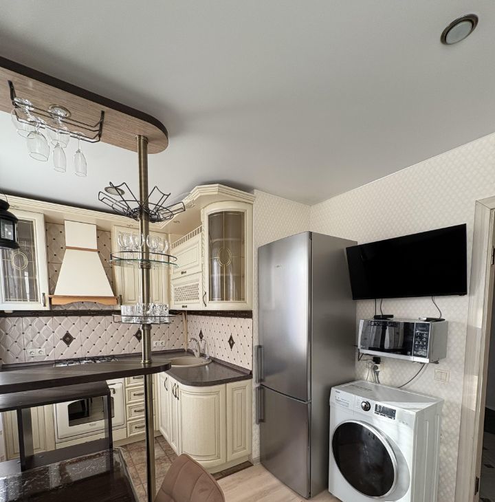 Комфорт и детали: В спальне и на кухне есть телевизор. Имеется застекленный балкон для хранения вещей или отдыха.