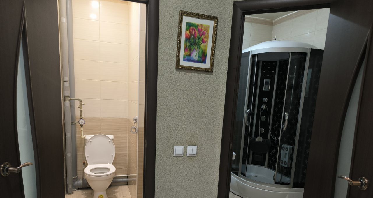 Кухня оборудована встроенной посудомоечной машиной. Ванная комната оснащена душевой кабиной и водонагревателем. В квартире имеется раздельный санузел.