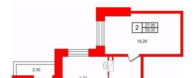 2-к кв. Санкт-Петербург ул. Орджоникидзе, 52 (59.35 м²)