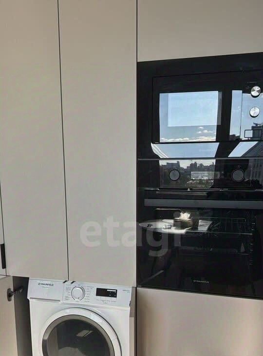 Встроенная техника: холодильник, плита, духовка, посудомоечная машина, микроволновая печь, стиральная машина.