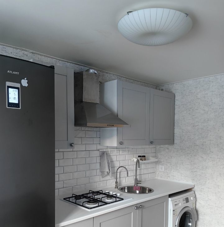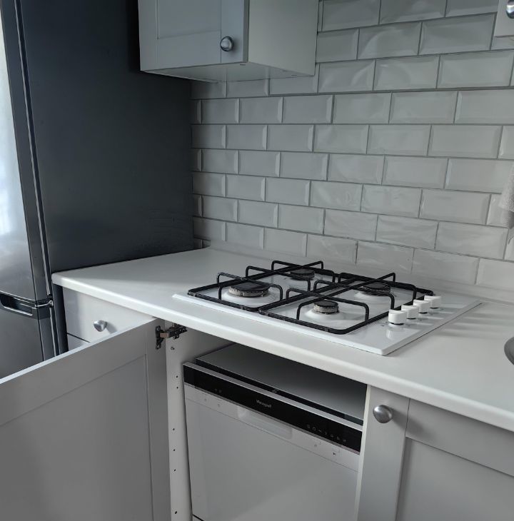 Кухня оборудована всей необходимой техникой: холодильник, стиральную машину, плита, вытяжка, посудомоечная машина, фильтр для воды.