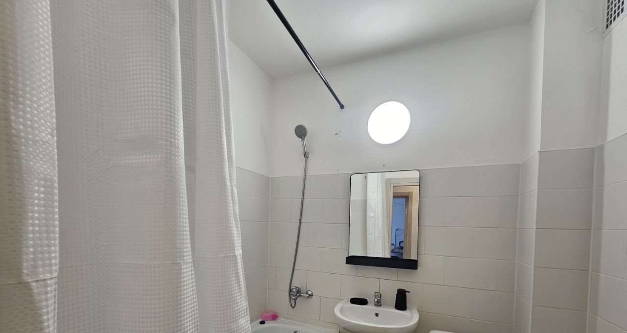 В квартире есть всё необходимое для комфортного проживания. В комнате(гостинной) — встроенная кухня с барной стойкой, раскладным диваном. Из техники: холодильник, плита, вытяжка, стиральная машина. Удобная планировка позволяет с комфортом разместиться одному или паре с ребенком.