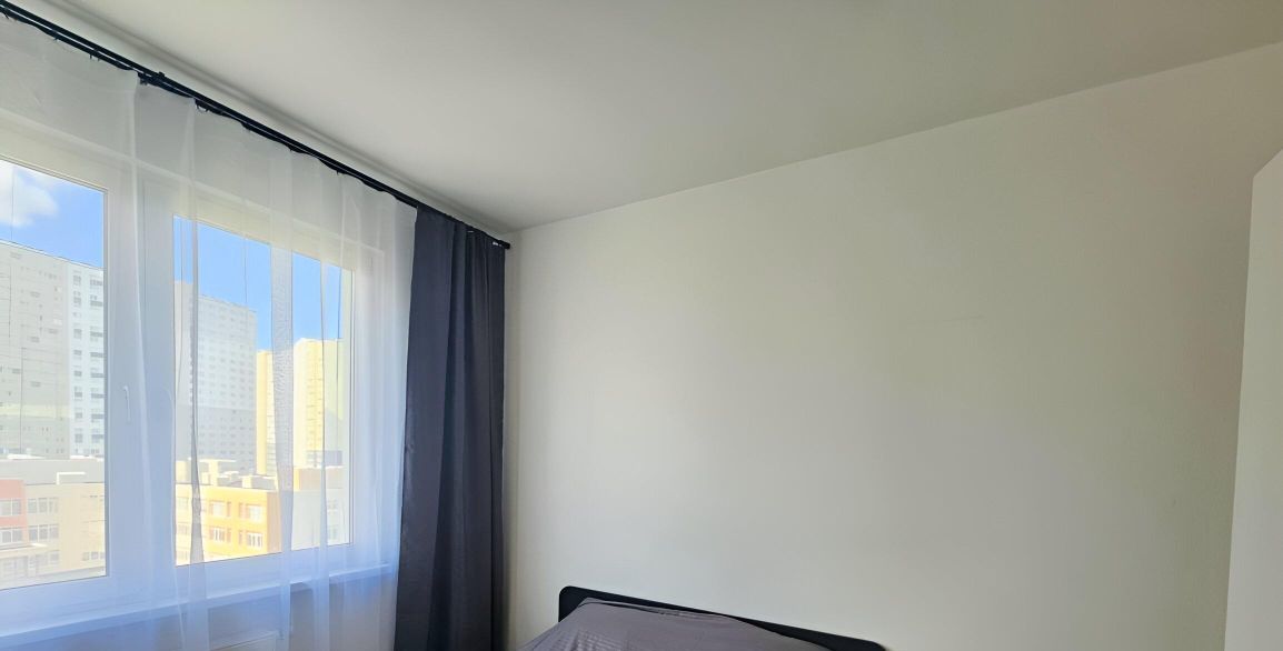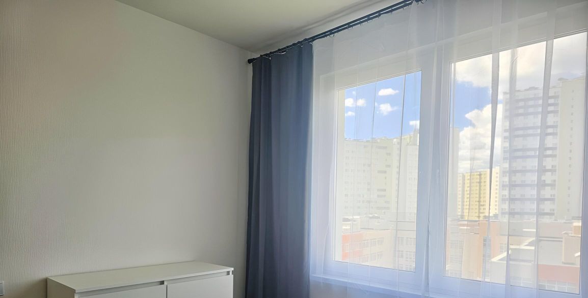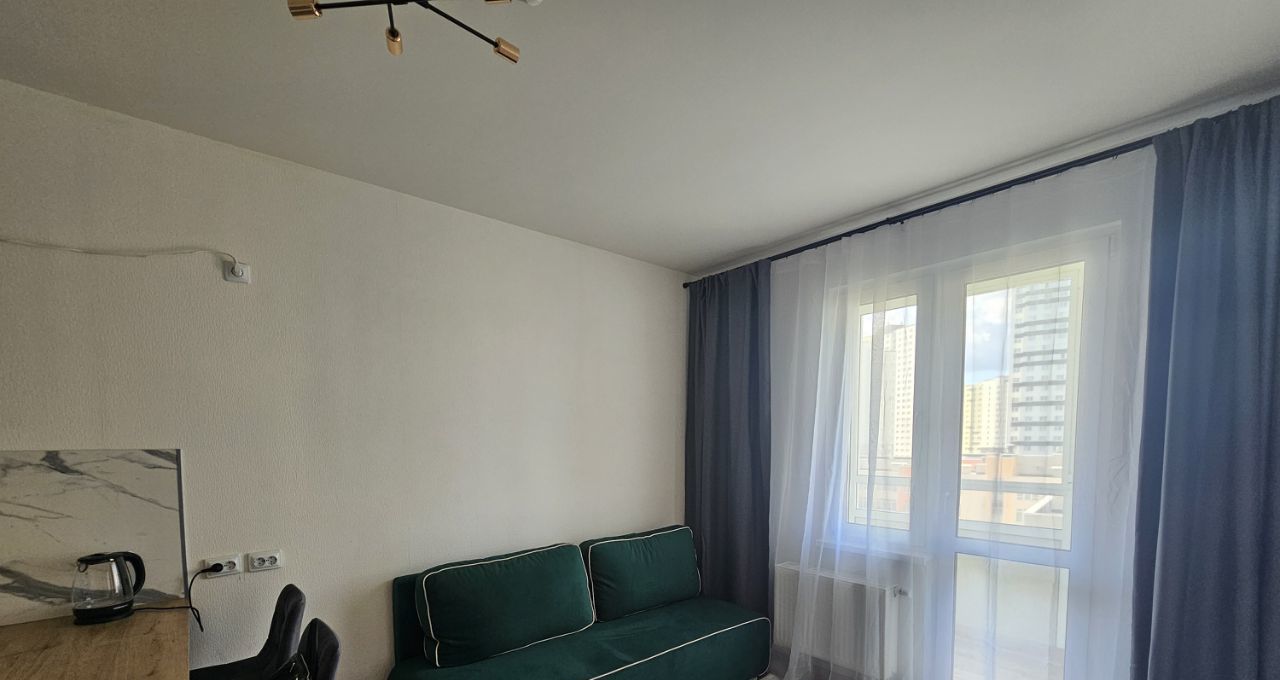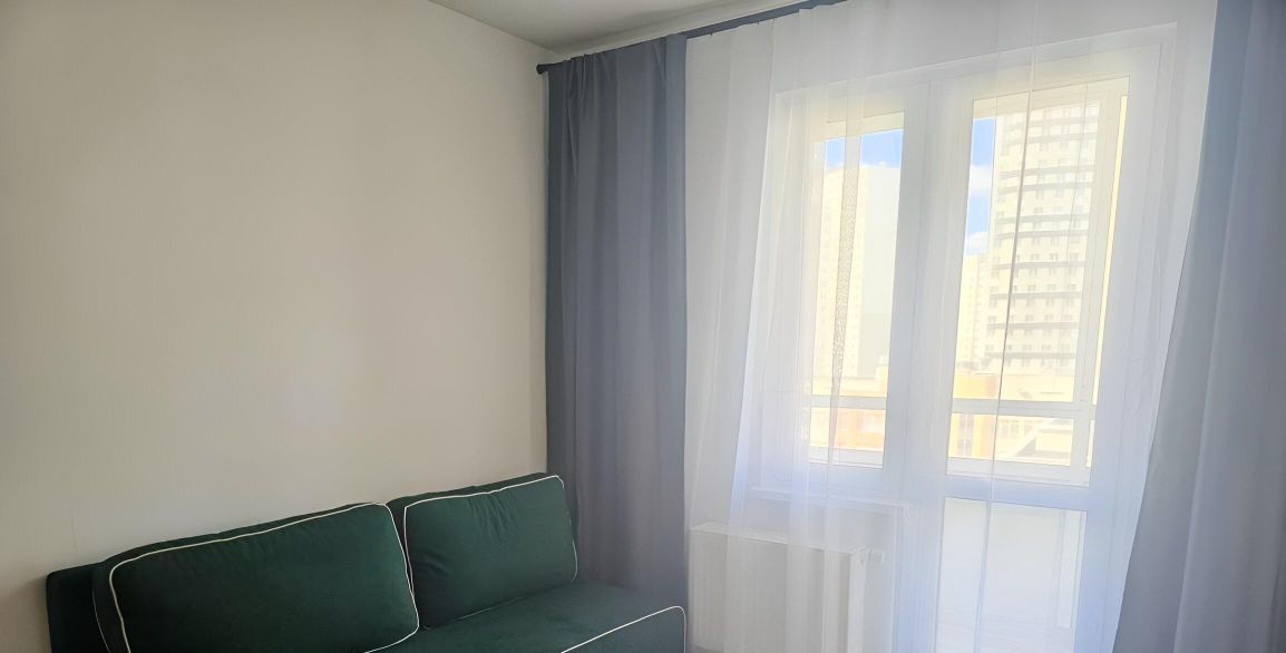 Сдаётся впервые уютная квартира - евродвушка с современным евроремонтом. Общая площадь составляет 35 кв. м, из которых 16 кв. м занимает гостиная-кухня, а спальня — 11 кв. м. Квартира расположена на 7 этаже 18-этажного панельного дома. Высота потолков — 2,6 метра. Окна выходят как на школу и лес, что обеспечивает отличное естественное освещение.