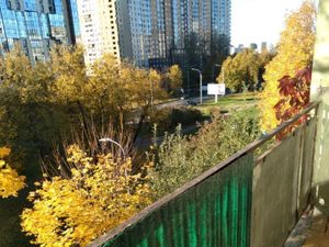 Балкон, окна выходят во внутренний зелёный двор, летом открывается приятный вид на деревья.