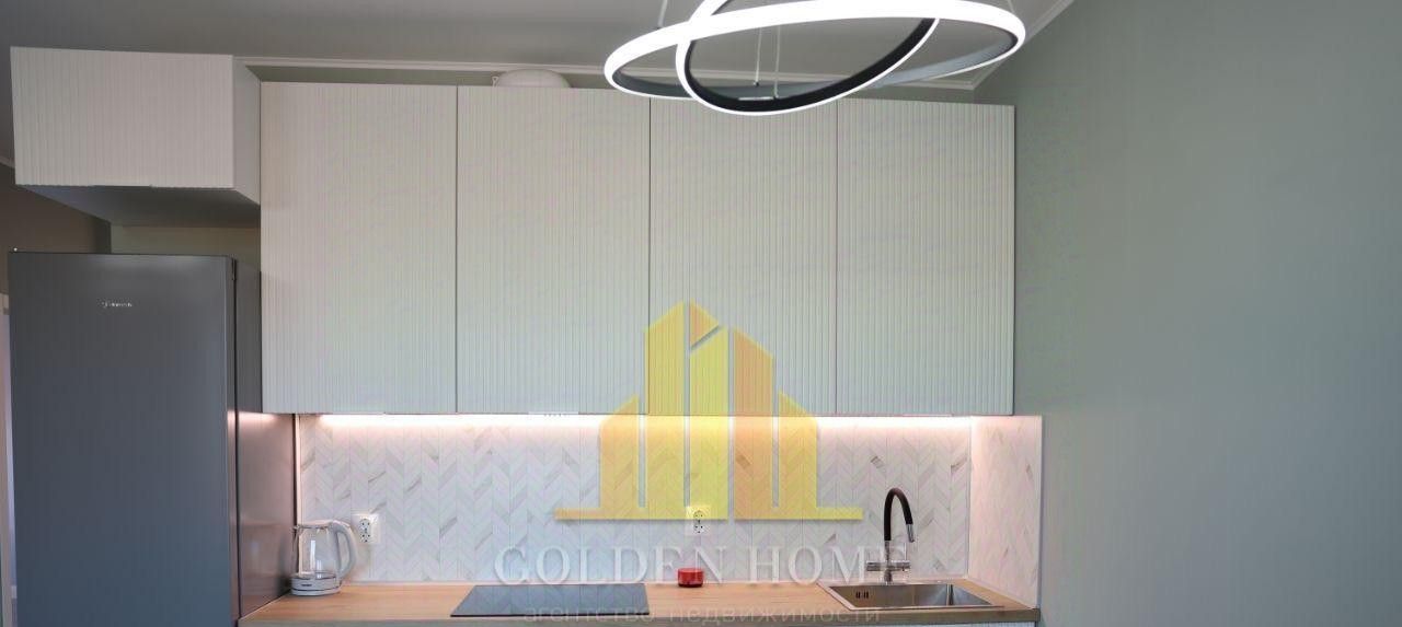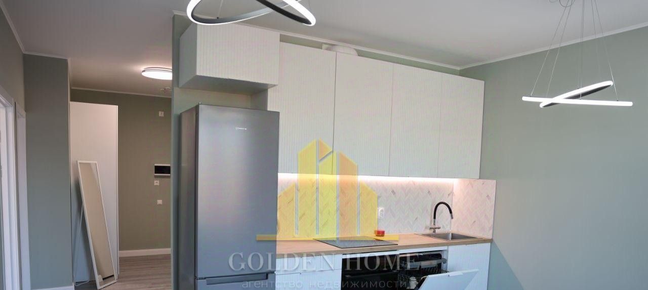 На данный момент укомплектована кухня: кухонный гарнитур с встраиваемой техникой, холодильник.