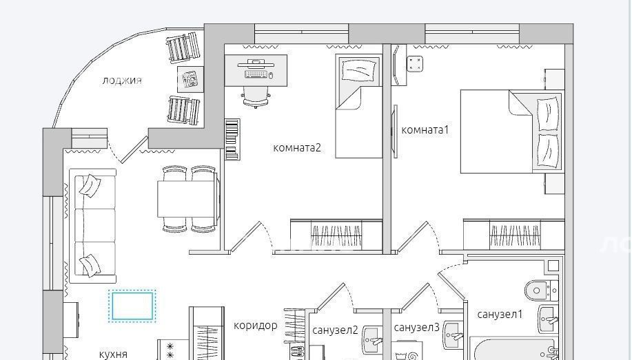 Большая светлая кухня-гостиная на три окна с панорамным балконом. Просторная мастер-спальня, уютная детская(или кабинет), просторная ванна, гостевой санузел и постирочная, выделенная прихожая, продуманная угловая кухня.