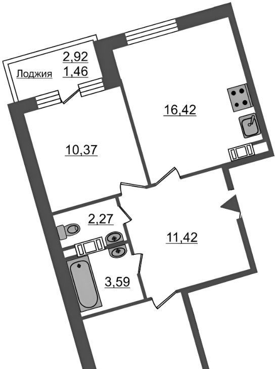2-к кв. Санкт-Петербург ул. Плесецкая, 6 (61.36 м²)