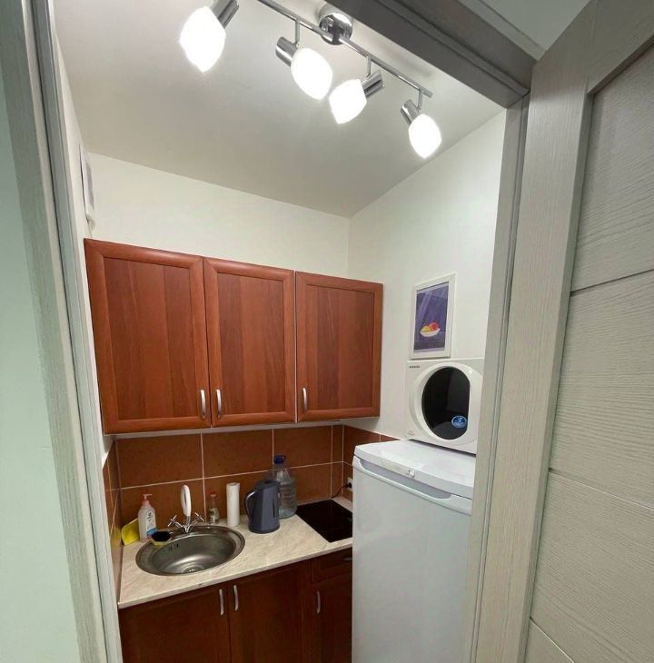 Финская ортопедическая кровать. Сантехника Oras/Geberit. Ванна с гидромассажем. Немецкие эффективные радиаторы. Мультимедиа 40" LCD/HDMI + Акустика. Пылесос. Мультиварка. Минидуховка. Электрочайник. Микроволновка. Стиральная машина. Посуда.