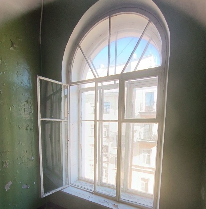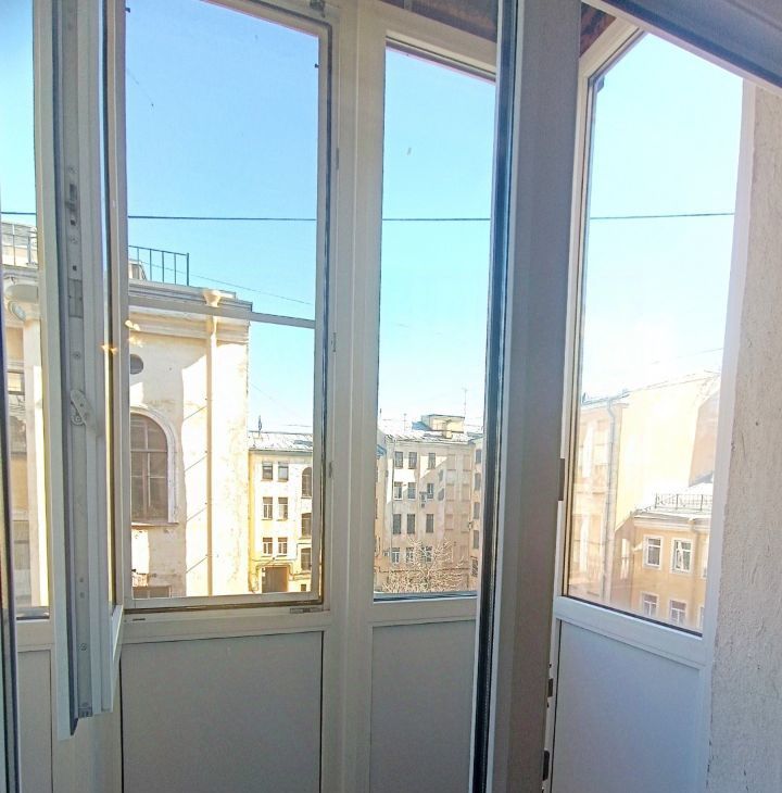 застеклённый балкон с видом на атмосферный Петербург