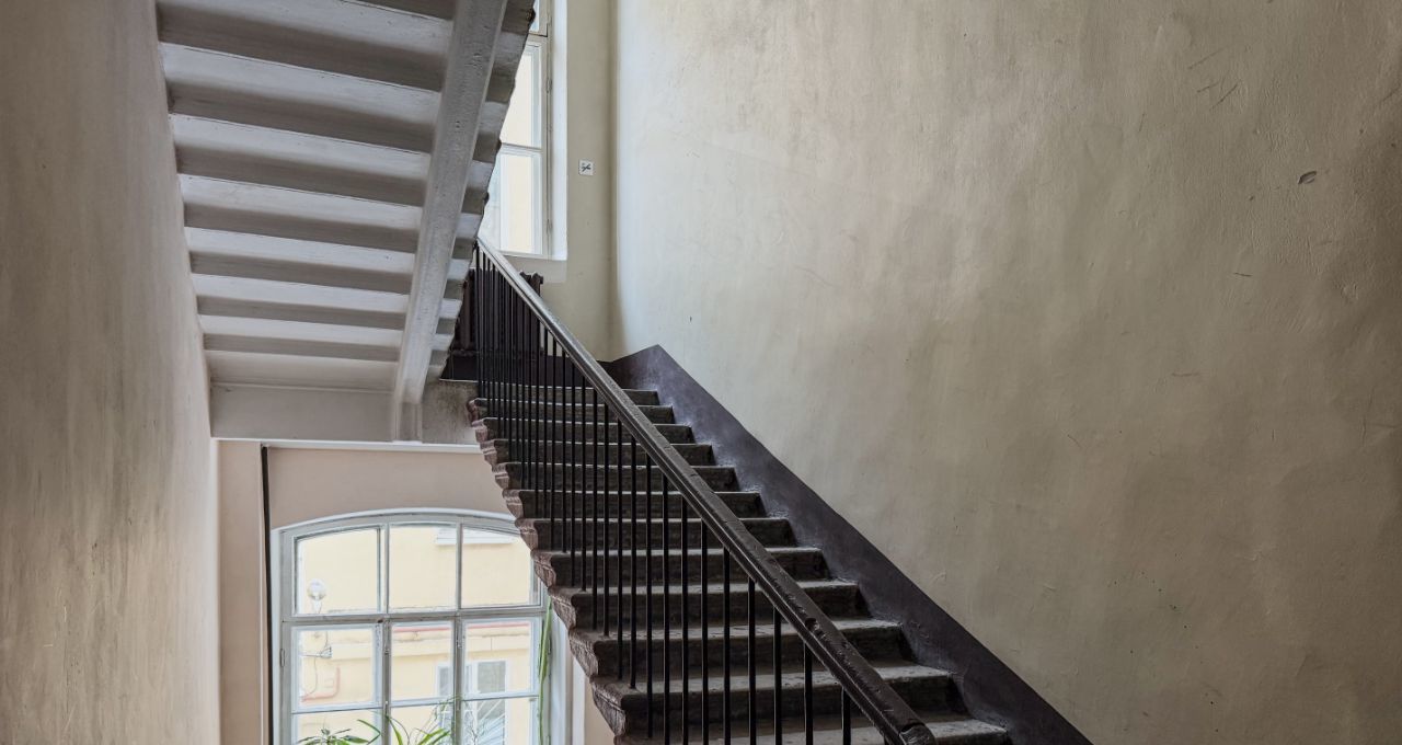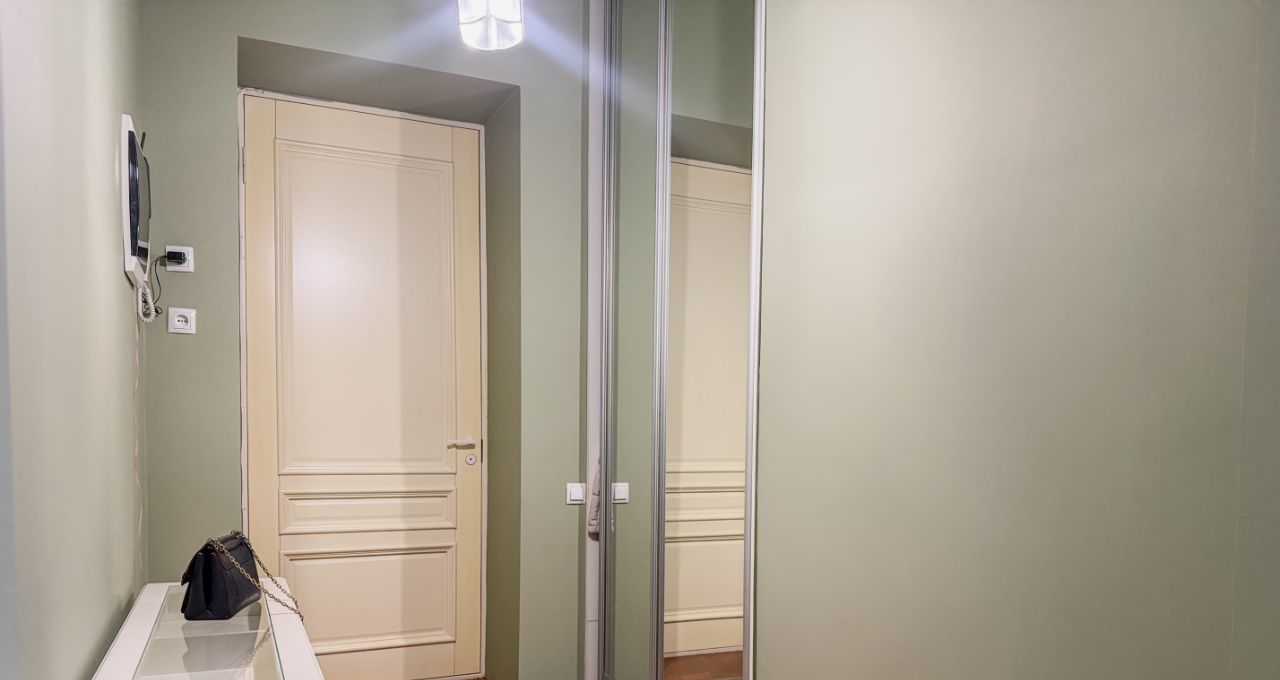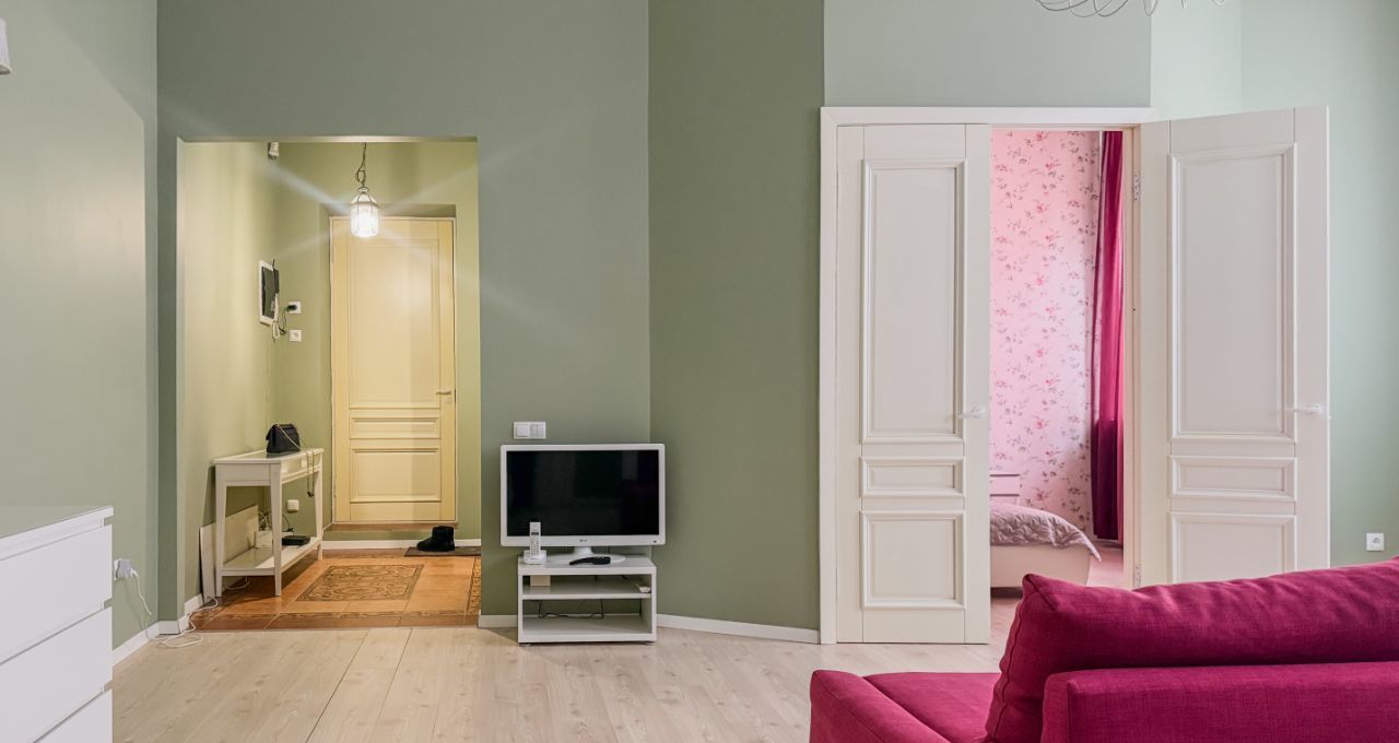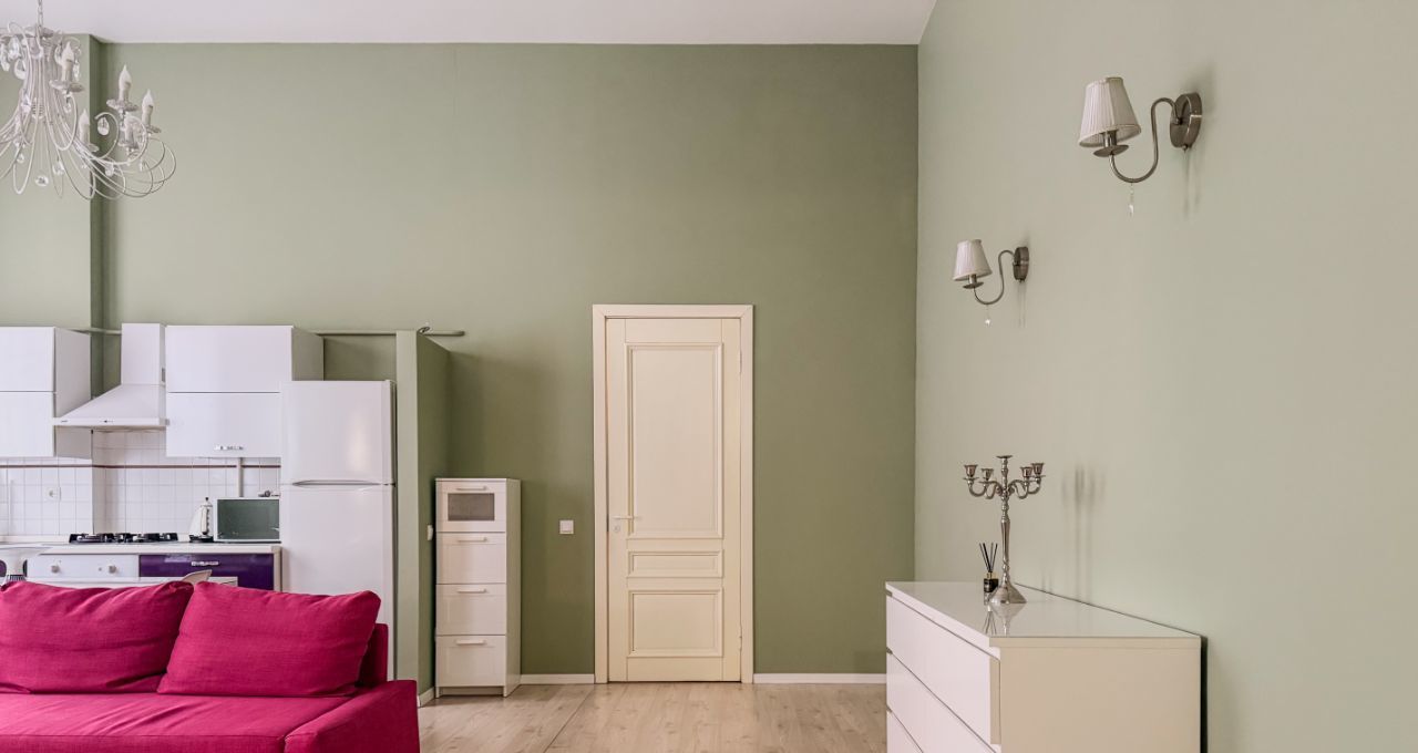 Высокие потолки 4 метра и окна, выходящие во двор, создают ощущение простора и уюта. Находится всего в 4 минутах пешком от метро "Достоевская", что делает её идеальным вариантом для тех, кто ценит удобство и комфорт городской жизни.