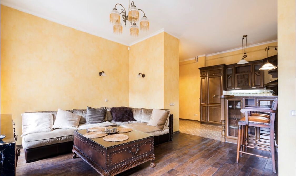 52 метра . Евроремонт . 5 звёзд . Дорогая англ Мебель . Кухня - гостиная . Спальня . Гардеробная . Ванна с окном . Гостевой туалет. Подробности на фото.