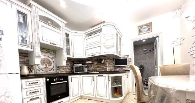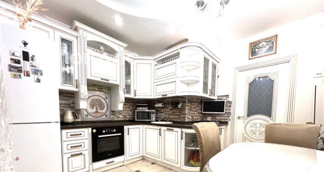 Квартира в классическом стиле с современным ремонтом. Ремонт делали для себя, продумывая каждую деталь для удобства и комфорта. Дверные проемы не стандартные , все двери делались под заказ. , натяжные потолки в комнатах и холе, на кухне гипрок с подсветкой. В Ванне и лоджии подвесной потолок. Полы ламинат и плитка.