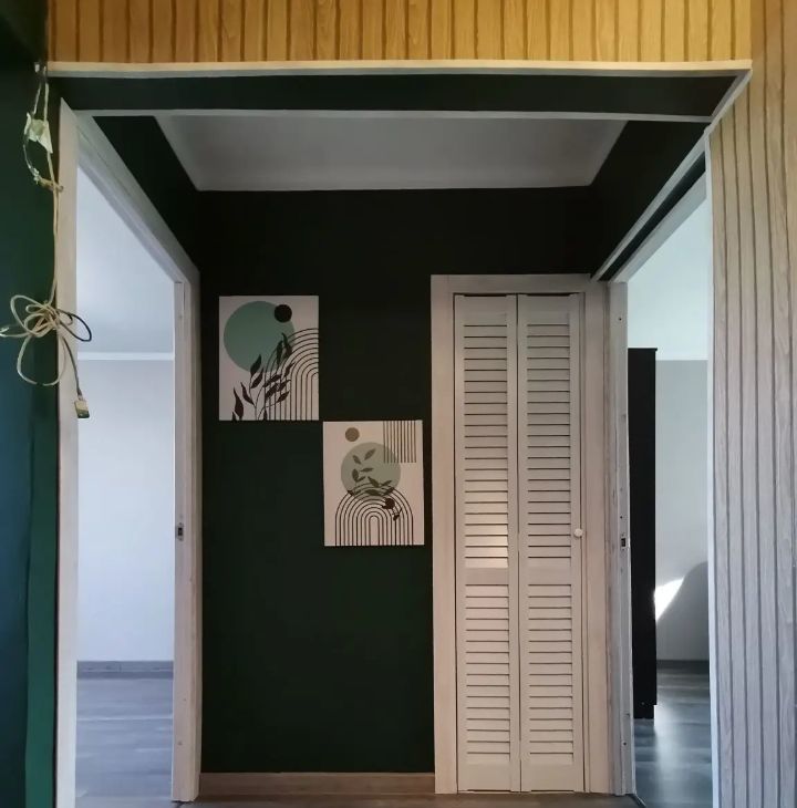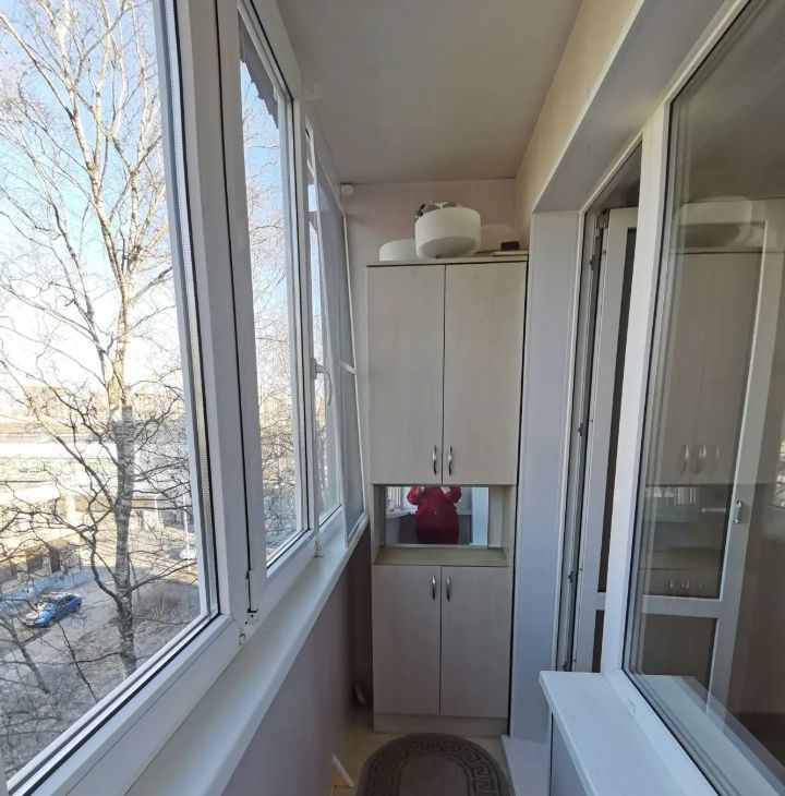 - Вторая комната имеет выход на остекленный балкон и обставлена платяным шкафом, тумбой для хранения и высоким зеркалом