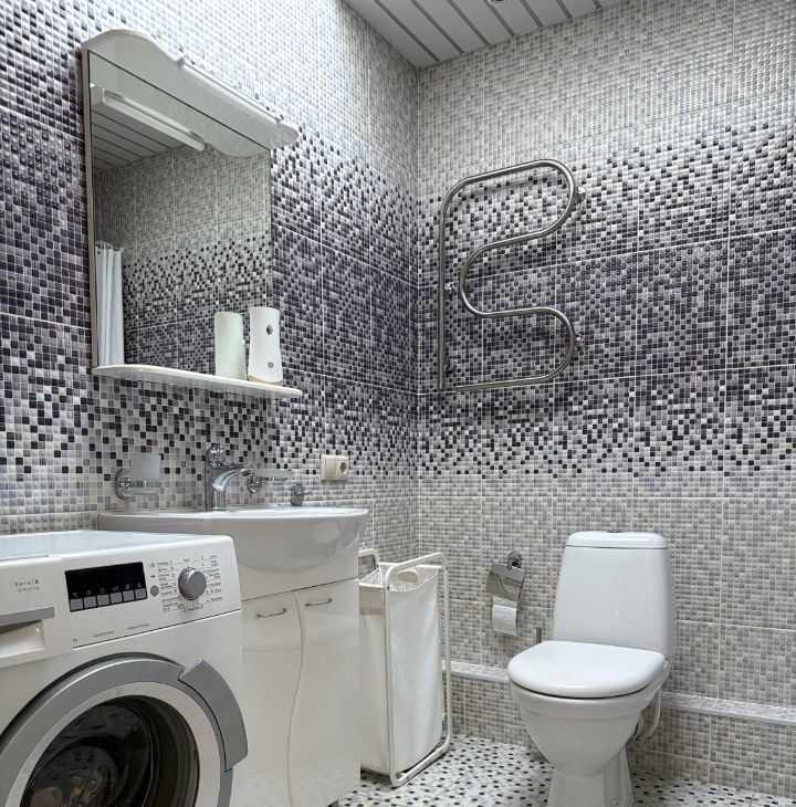 Большая ванная комната с душевой зоной и дополнительный отдельный туалет.
